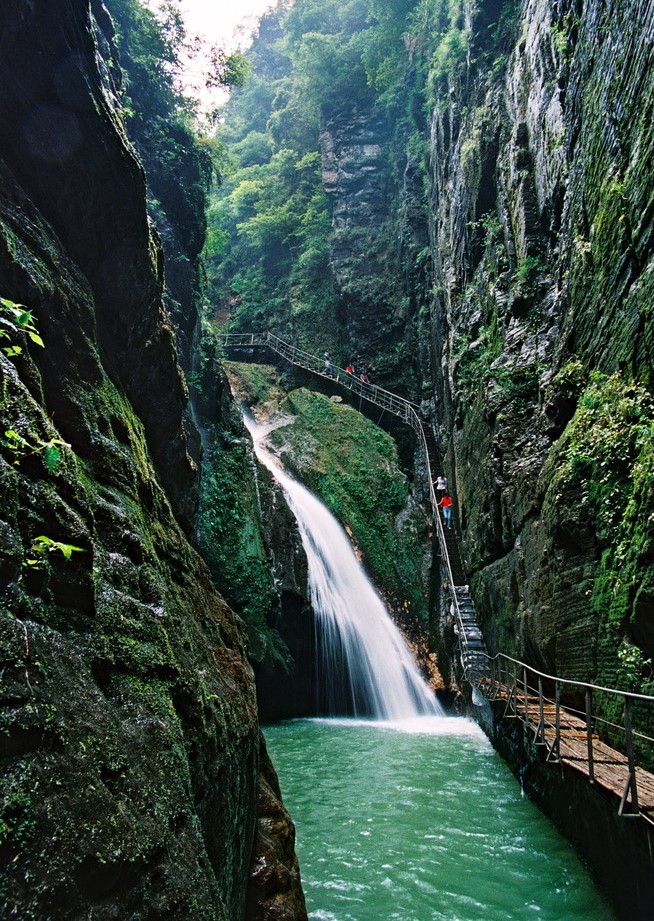 峽谷河岸地形與河水流速、流量有關,以自然曲線為主,通過河水流向的沖擊而逐漸改變。峽谷河流沿岸地形設計以尊重自然為主,兼顧防洪抗災功能。景觀建設以曲線、弧線為主,避免因人工規劃設計而出現直角、銳角、長距離直線景觀。景觀附著物如木棧道、木平臺等則應隨自然地勢起伏,適當探入植被掩映區,為受眾提供親水空間的同時也要顧及安全措施。.jpg)
