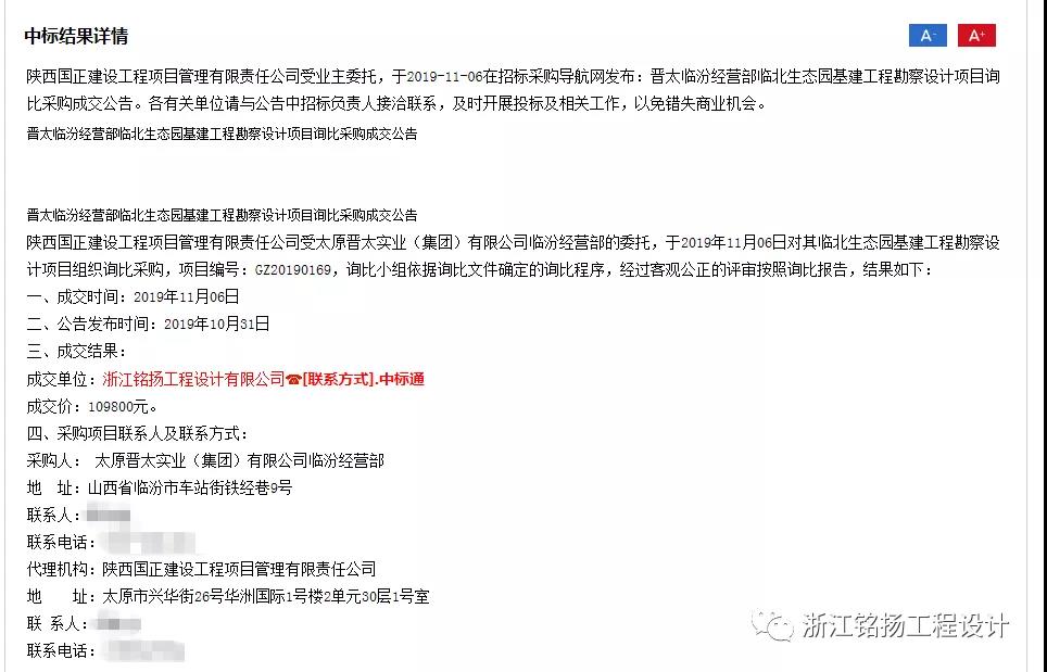 中標陜西省臨汾市晉太經營部臨北生態園基建工程勘察設計項目。中標價: